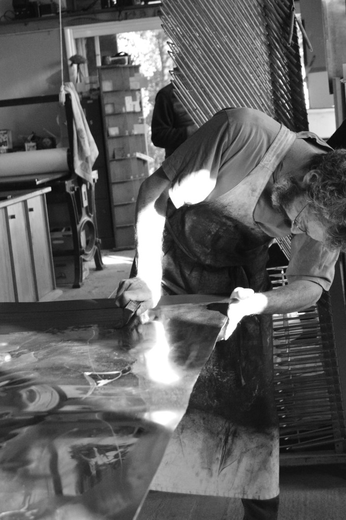 La composition du dessin, le traitement du bois par le travail des gouges, une certaine manière d’encrer et d’imprimer emmènent l’œil du spectateur dans un long cheminement aboutissant invariablement à s’arrêter sur un certain détail.