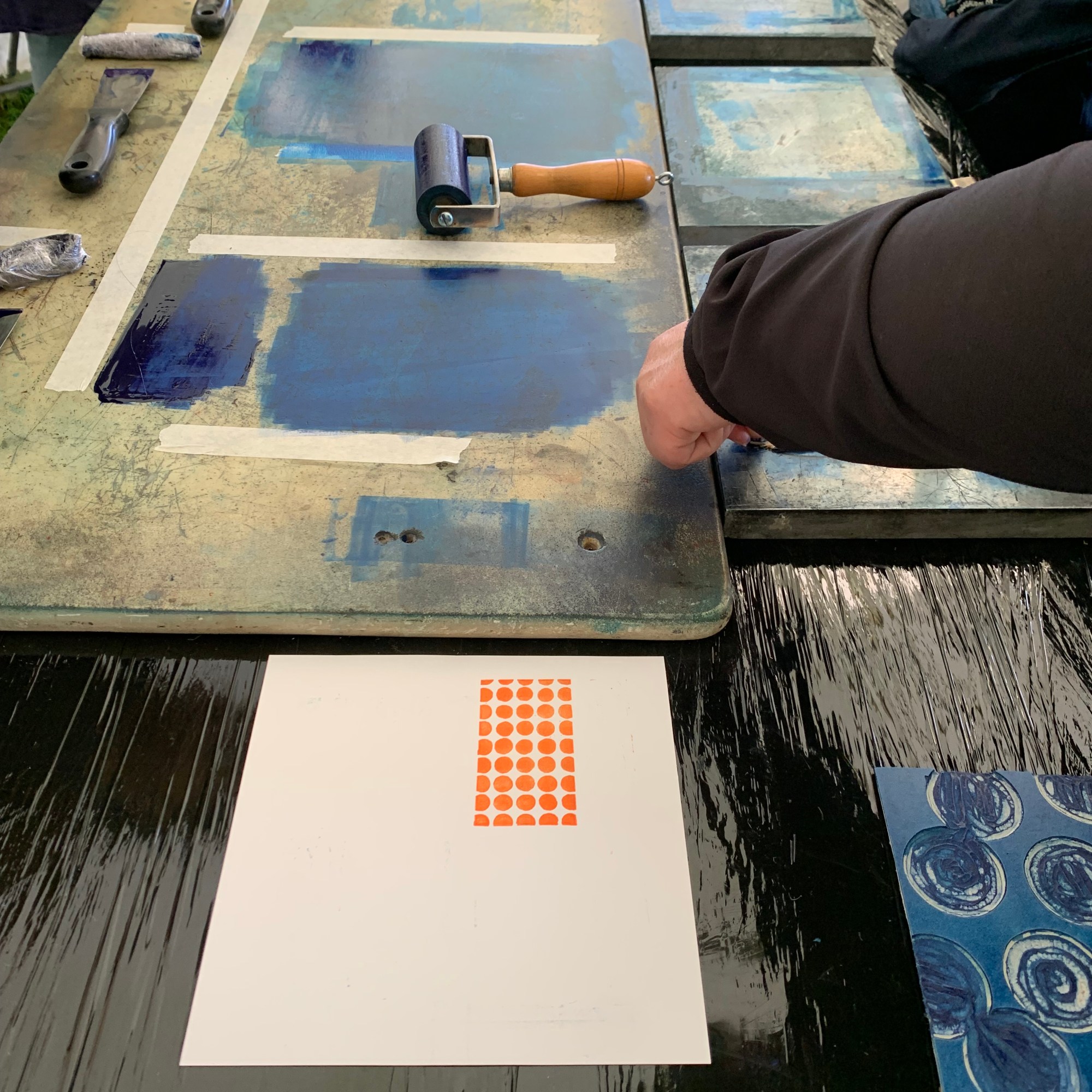 Accompagnement de l’artiste Gr1 2SL pour la réalisation d’une linogravure en lien avec sa nouvelle création murale. Atelier d’impression ouvert au public. Une gravure sera utilisée pour la carte de vœux de la municipalité.