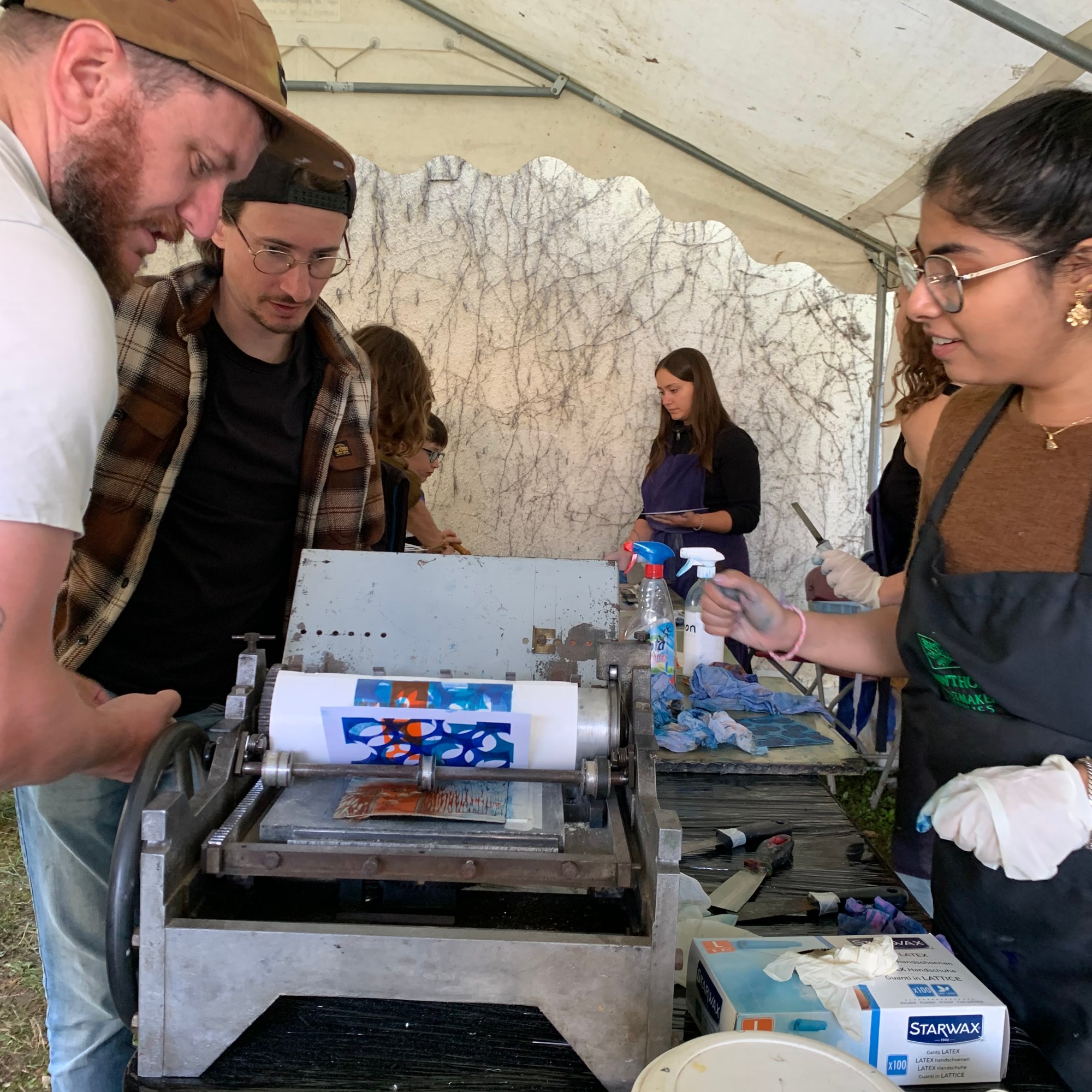 Au sein de l’atelier ou Hors-les-murs, dans les musées, en milieu scolaire, sur des salons ou lors d’évènements publiques l’ADN œuvre pour faire découvrir l’estampe au public le plus large.